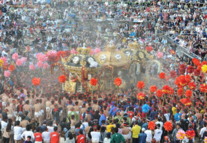 毎年10月第2月曜日(スポーツの日)の前日が本祭(曳山巡行)、その前日が宵宮